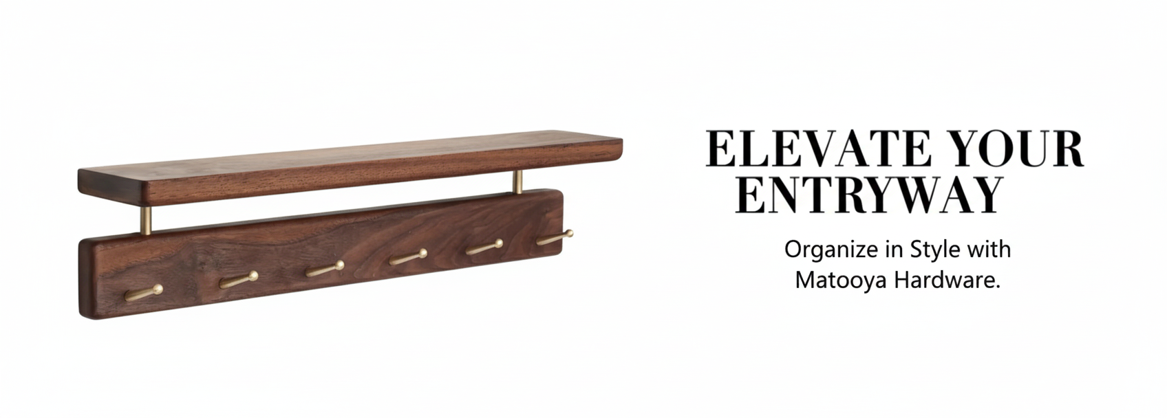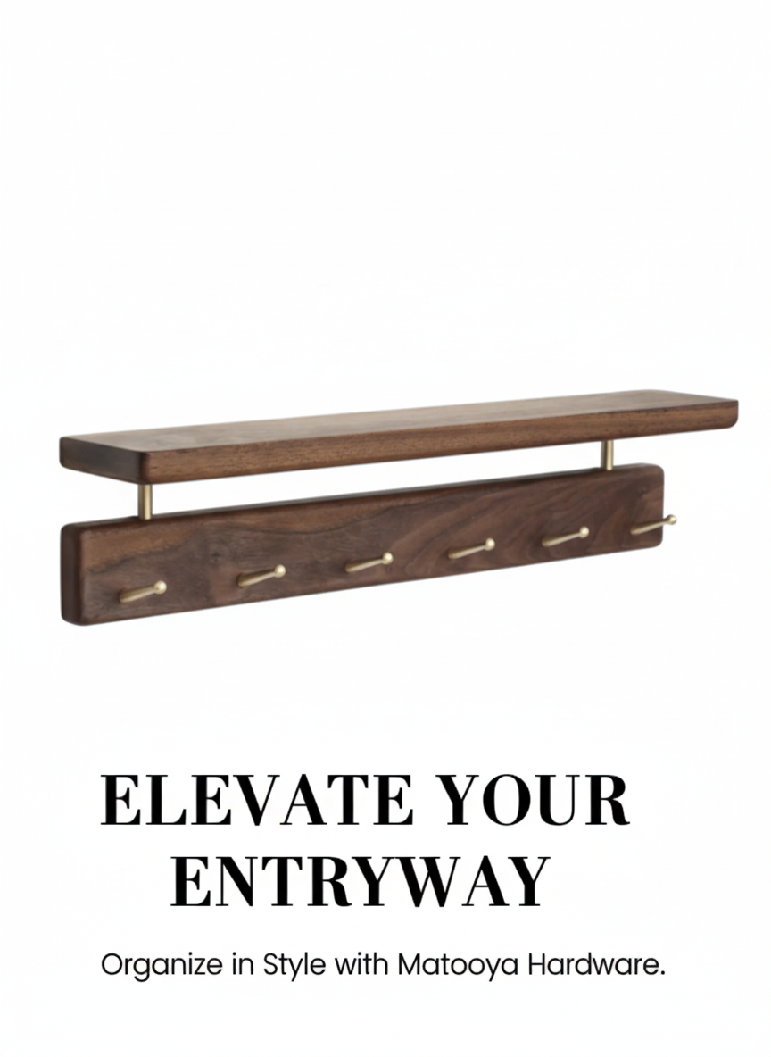 Solid Brass Wood Shelf with Hooks
