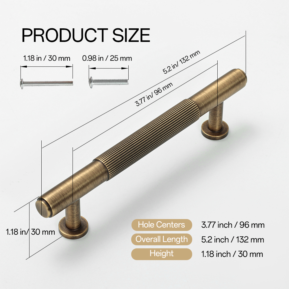 Easy installation: The cabinet handles comes with two sizes of screws (2pcs -0.98 inches/25mm; 2pcs -1.18 inches/30mm), suitable for door panels of different thicknesses