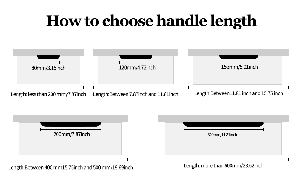 Handle length: 80mm, 120mm, 150mm, 200mm, 400mm, 600mm, 800mm, 1000mm, 1200mm